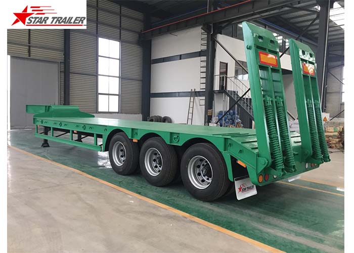 3 Axles 60 Ton Low Bed Semi Trailer With Detachable And Folding Ladders